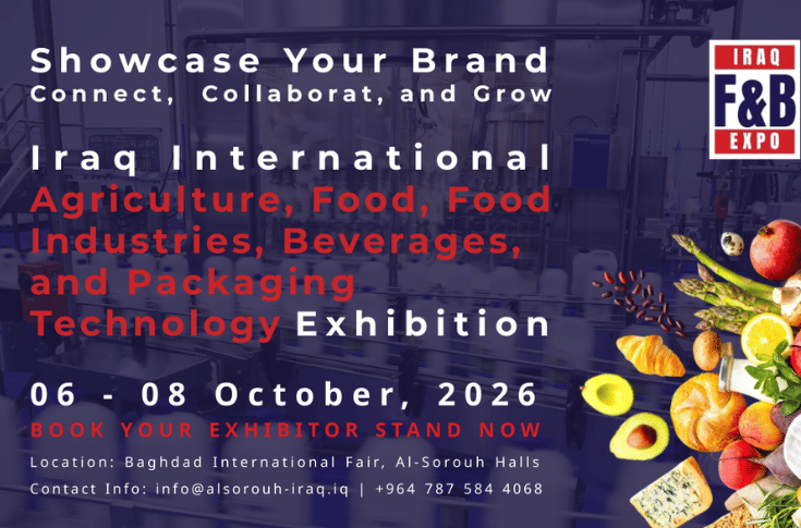 Iraq International Agriculture, Food, Food Industries, Beverages, and Packaging Technology Exhibition will connect global suppliers with Iraq’s growing food and beverage sector.