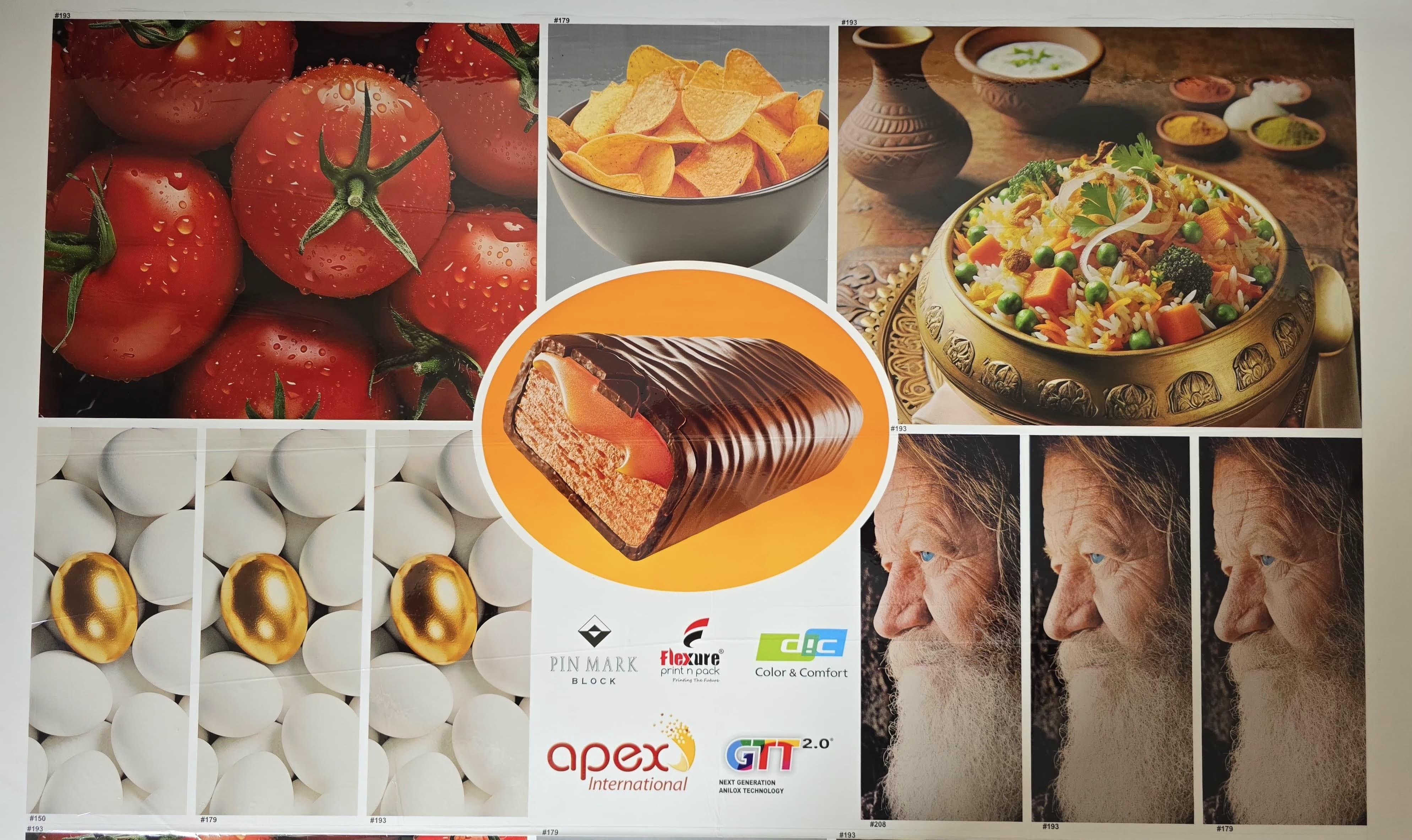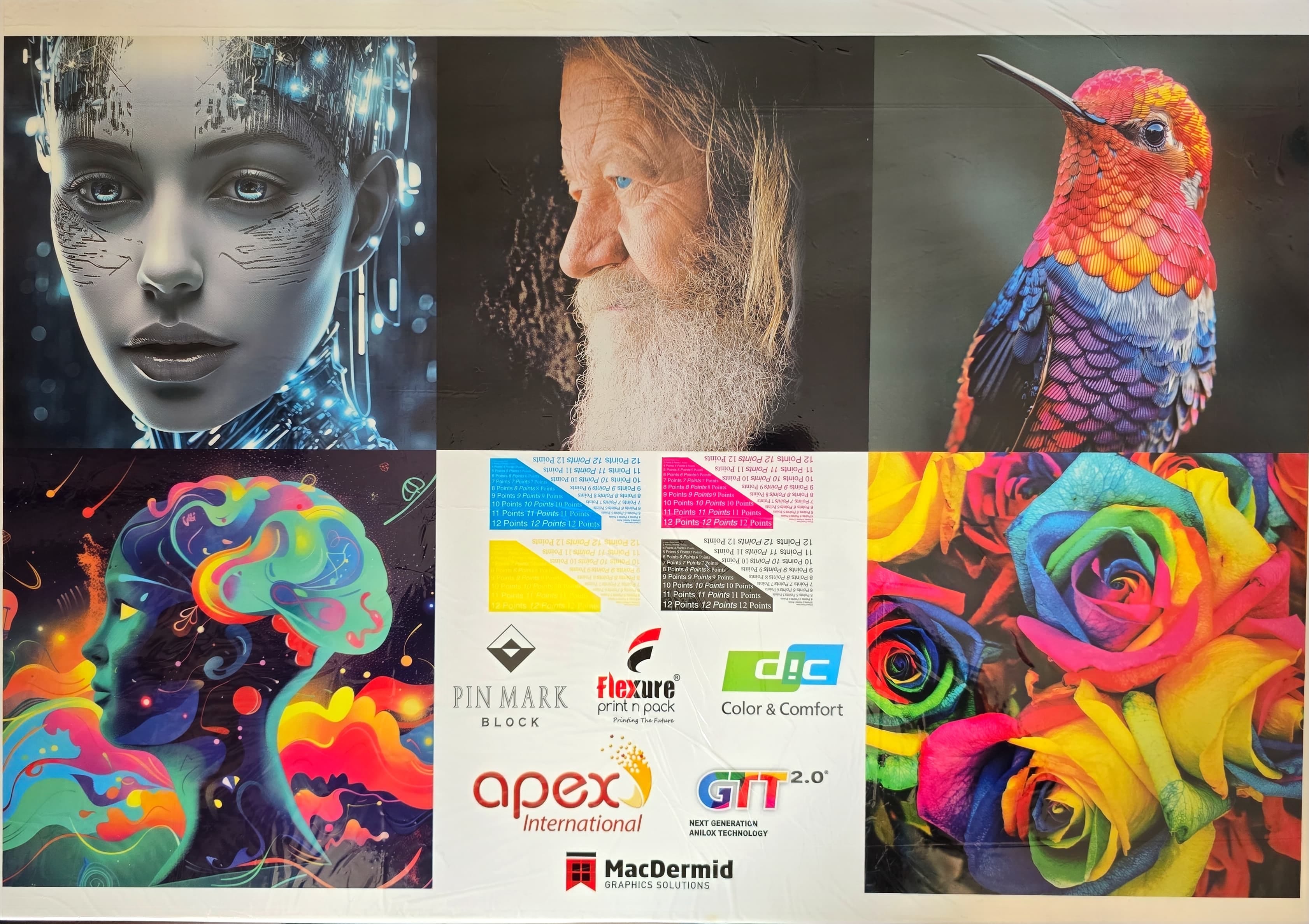 The sample shared for PrintWeek Awards was produced for PrintPack 2025 to demonstrate the flexo printing capabilities with AM/FM screening technologies. The sample demonstrates various high-quality images printed with AM/FM screening at different screen rulings ranging from 150 to 208-lpi.