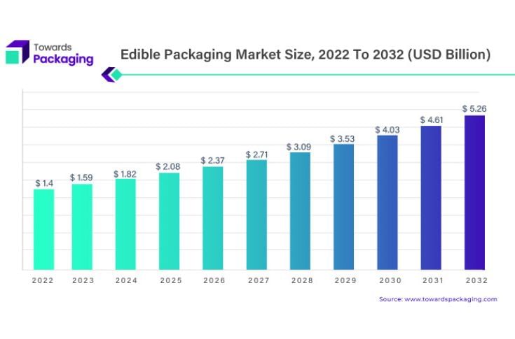 A report by Towards Packaging unveils the growth trajectory of the edible packaging market, from USD 1.4-billion in 2022 to a striking 14.2% CAGR.