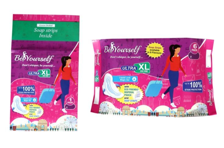 The solution for this would be packing the product in a UV-coated paper. Be yourself pack is a single pad product with UV-coated paper used as a primary pack of 100 GSM for travelling purposes. It can even be available in an “Art paper”, a secondary pack of 100 GSM of six pads with six flavoured paper soap strips.