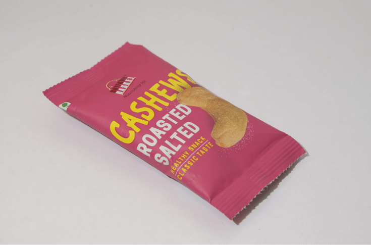 Centre-sealed pouches is a 12 micron rev printed PET with matt varnish /9 micron Al foil/40 micron natural poly. A pocket friendly travel pack with a healthy snack. The packaging comes with easy to tear properties.