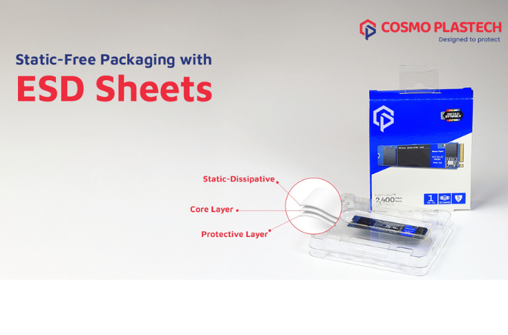Cosmo Plastech's newly launched ESD Plastic Sheet (PET) manages and dissipates static electricity to prevent damage to electronic components while they are stored, handled, and shipped