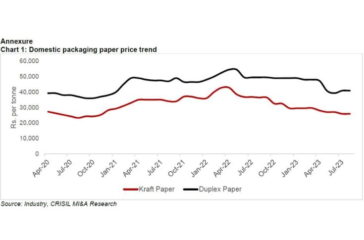 Crisil says there is a decline of 20% for kraft paper and 15% for duplex paper between April-August 2023 from last fiscal’s average