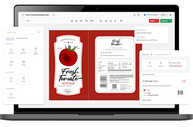 A significant highlight of WebCenter Go is the integration of Esko's new AI-powered tool, Comply. This intelligent, automated solution uses customisable rules and AI to validate critical components of product packaging and promotional materials. Comply can detect missing allergens, incorrect barcodes, FDA formatting violations, and other potential errors, ensuring regulatory adherence.