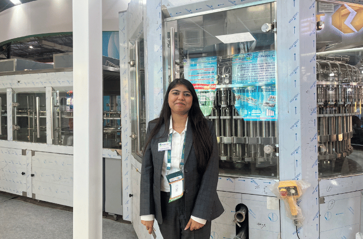 Speaking to WhatPackaging? at the expo, Pooja Sharma, service engineer coordinator at Huihe India, detailed the specific product on display. “The bottled water filling line includes the blower, filler, and capping,” Sharma explained. “It is used to fill bottles with water, CST, and hot liquids.”