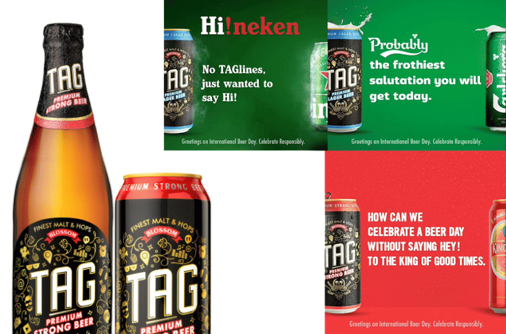 Daman-based Tag posted a series of creatives, essentially saying hello to select legacy beer brands that dominate the beer market. The campaign was launched on international beer day and shall propagate the rise of liquor packaging in India.