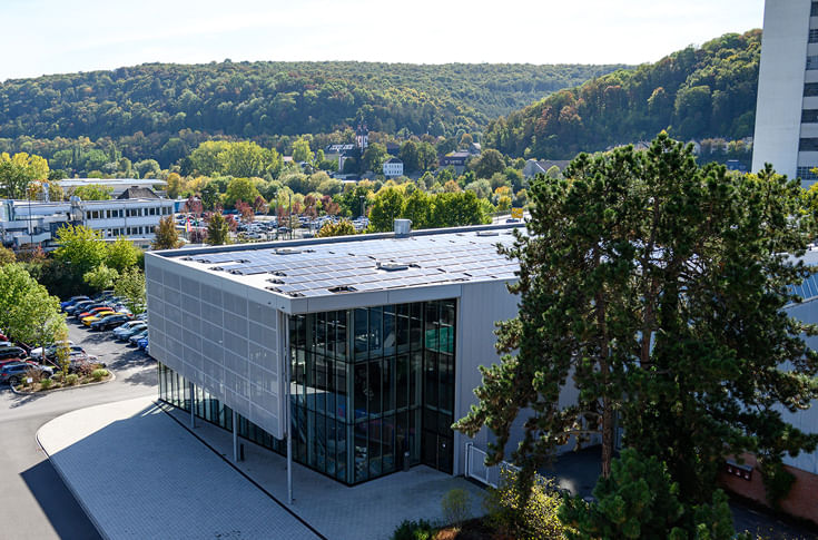 At the beginning of October 2022, Koenig & Bauer commissioned a photovoltaic array for on-site power generation on the roof of the Customer Technology Centre at group headquarters in Würzburg. An annual yield of around 200,000 kWh of electricity is now available for direct consumption at the Würzburg facility with immediate effect. Based on the specific greenhouse gas emissions for the German power mix overall, the photovoltaic array will benefit the environment by saving more than 80,000 kilograms of CO2 emissions per year.