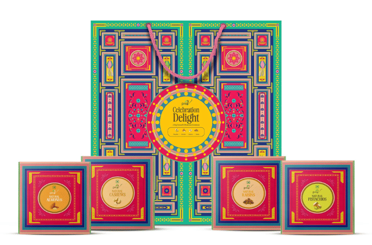 The health and wellness segment has also entered the premium gifting conversation. ProV Foods, a leader in dry fruits and healthy snacking, has launched its Celebration Delight Festive Gift Packs, presenting almonds, cashews, pistachios, and raisins in elegant, reusable packaging.