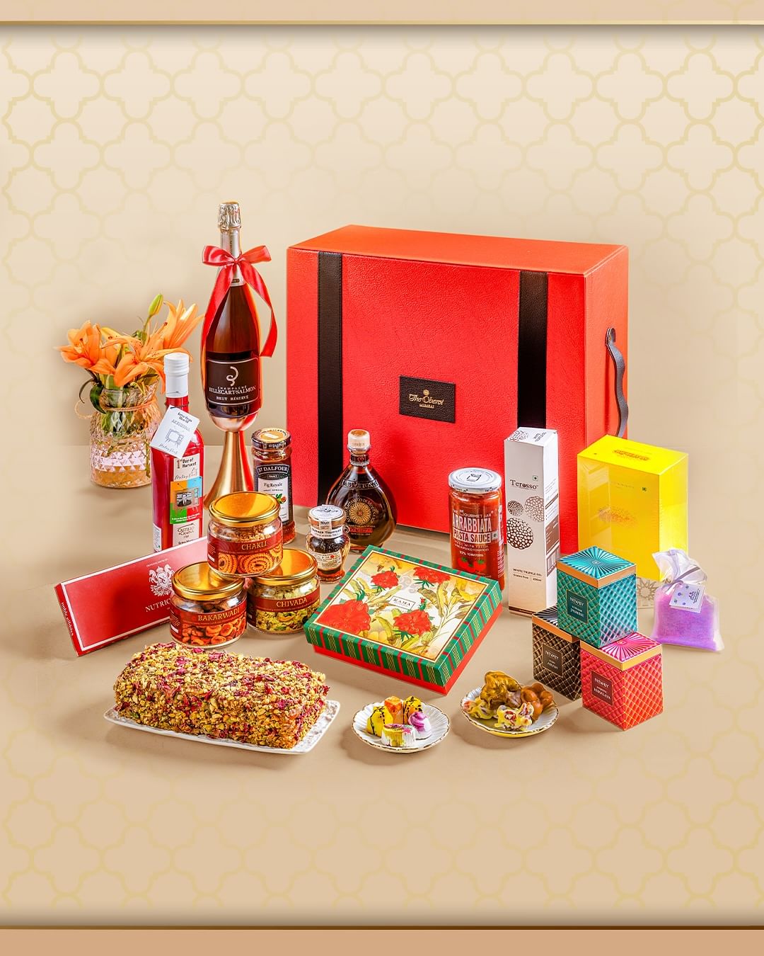 The range features six collections – celebration, festive, signature selection, wedding wows, welcome whispers and little miracles. Each collection has distinct packaging formats suited to the occasion, such as vegan-leather trunks, rigid boxes, or woven baskets. The Festive range, for instance, draws on motifs inspired by Indian architecture and decor, using colours like Oberoi Blue, Brown, Ivory, and Gold with an accent orange for the Diwali season.